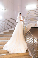 シンプルな背景で、ドレス全体が写るショット✧当店は、姉妹店合わせ400着以上の衣裳の中からお選びいただけます♡
