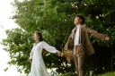 手を繋ぎながら顔を見合わせて。外国でのデート風な1枚に。