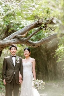 ご新郎さまのジャケットを羽織ってお散歩しているかのようなお写真も◎