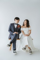 次は自然光が入る白背景にチェンジ!少しラフなポージングも◎