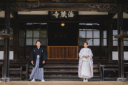 前後で距離を置いて奥行きを。ピントは手前のご新郎さまに合わせますが、ご新婦さまもにこにこを忘れずに。