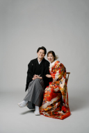 時代を超えても変わることのない王道の白無垢と黒紋服。硬派な衣装はやっぱりカッコ良い。
