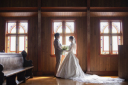 こだわりのドレスとこだわりのブーケを持って新婦様のソロショット。温かい光りに包まれながらのお写真撮影です♪