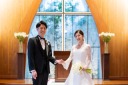 新婦様の自然な笑顔が溢れるお写真。目線の先には新郎様が..?