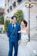 肩をトントンして振り返ると、緊張がほどけたおふたりサプライズでご用意された花束とその大きさに喜びが隠せない新婦様でした