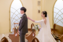 お支度が整ってお互いの姿を初めて見る瞬間 チャペルの中ではかっちり写真もお撮りします