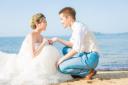 ※こちらの投稿はリブランディング前の内容になります。写真フレームから遠近法を使って撮影!真っ青な空と海に2人の衣装がとっても映えます!