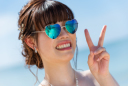 フォーマルウェアに遊び心のあるアイテムのコントラストが最高に可愛い。サングラスショットは定番だけどリゾートでのロケーションフォトならではのマストショット。