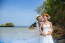 砂浜を彼がエスコートしてくれてる♡ドレスだって安心です!