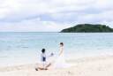 真っ白な砂浜に寝転がって♪見つめ合うおふたりの後ろには沖縄の美しい景色が広がります!!