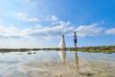 イニシャルの後ろではおふたりのバンザーイ♪空もたっぷり入れてスケール感を出します!