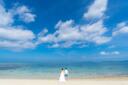 キラキラとした笑顔と海がぴったり!!ブルーのブーケも海とマッチしています♡