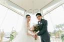 クールなスタイルでの撮影も。ご新婦様のドレスはmika ninagawaのお花プリントの上にチュールを重ねたドレス。このシーンにとってもお似合いでした♡