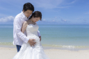 海を背景にウェディングドレスがなびくお姿とても素敵です!!
