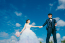 青い空と輝く海が新郎新婦様をしっかり引き立てます!