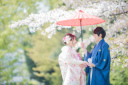 和装フォトウェディングは、桜のアーチを使っての撮影でさらに豪華でかわいらしく♪