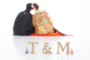 人気の金屏風の前での正座のショット。ウェルカムボードにお勧めの構図です!