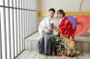 気品ある和装姿に、愛らしい存在が自然と溶け込んだ一枚