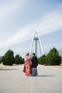 この日は晴天!青空の下、堤防でご新郎様にご新婦様を抱っこ!