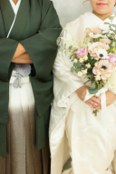 ナチュラルカラーのクロスや流木、額縁などがあしらわれたBOHOな雰囲気が漂う一枚です。背景が衣装にもマッチしております♡カップル様にぴったりな背景でした!