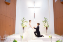 挙式では、「誓いのシーン」としてするポーズになります。手を取り合って見つめ合うお二人になります♡