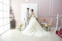 スタジオでの撮影はドレスをお持ち込みいただきました♡チャペルとは全然違う雰囲気でどちらも素敵ですね♡