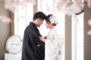 ドレスの桜と背景の桜がマッチした1枚です♪赤のドレスよりふんわりと柔らかい雰囲気の花嫁様とても可愛らしいです♡♡