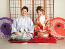 可愛いピンクの背景の時はお二人で少し遊んでいただきました。昔懐かしい紙風船でポンっと!お二人ともとってもお上手です♪