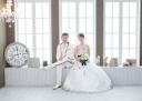 新郎様がどっしりと構えてもらうこのポーズ頼もしくかっこ良いです後ろに寄りそう花嫁様も可愛い