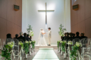 グリーンのカラードレスにお色直し♪こちらのカラードレスは最近お問い合わせの多いものになっております♬