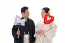 挙式が始まる前にスタジオにて前撮り撮影♡挙式前ということで緊張が伝わるお二人です(^o^)♡