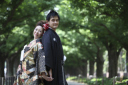 白を基調にした迎賓館門前での撮影。色鮮やかな色打掛がはえてこちらも綺麗ですね^^