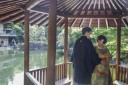 水面に反射する光の美しさとお二人の仲睦まじい姿を収めました。