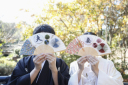 紅白の番傘とお二人の和装のコントラストが美しい一枚です。
