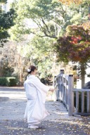 紅葉に包まれた美しいロケーションでの撮影です。季節の彩りが、お二人の姿をより華やかに見せてくれる一枚となりました。