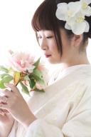 扇子でお顔を少し隠した二人だけの世界。可愛い演出できます