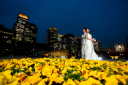 新婦さまお一人でのカット。スタジオで人気の花の壁は鮮やかでとっても春らしいです!