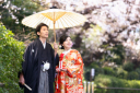 桜背景に白無垢がふんわり優しい印象のお写真。美しいピンショットです^^