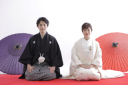 庭園で番傘をさして。満開の桜の季節に撮影できることはとても嬉しいことです。