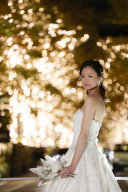 ライティングを変えて違った雰囲気でも撮影しました。ドレスはヴェラ・ウォンのリーゼルです。