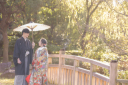 まずは和装での撮影をしました。新緑に赤と紫の番傘が素敵ですね。