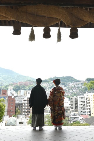 当日の天気は曇りだったので少し心配していたのですが、とても鮮やかで天気など気にならない仕上がりでした。諏訪神社を前に緊張していましたが、自然な笑顔の写真がとれて大満足でした。