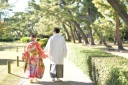 まずは、和装で“中津万象園”へ。ガーランドを使って撮影していきます!
