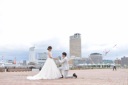 最後はウエディングドレスで海ロケです。一の宮海岸は公園も隣接しているので、砂浜と芝生の両方で撮影できるんです!ヤシの木もあり外国へ来たような雰囲気を味わえます。