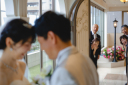 光がたっぷり入るチャペルブースでは、ウエディングドレス姿が映えます。奥行があるので全身写真も美しく残す事が出来ますよ。