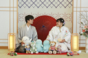 1着目の和装はふたりだけでリラックスしながら撮影です♡華やかな金の打掛が美しい新婦様にぴったり♪新郎様も青の紋服で爽やかにきまってます!