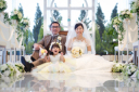 まるで絵画のようなお二人とそれを見守る親御様。とても素敵なファミリーショットですね。