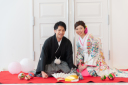 お2人で明るい未来の扉を開けて。笑顔も輝いています。