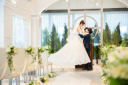 トレーンの長いドレスを選ばれたご新婦様。ふんわりと広がっている姿が美しく素敵。