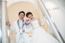 大理石にお二人の姿を映し出します。ブルーカットが素敵な雰囲気を演出。